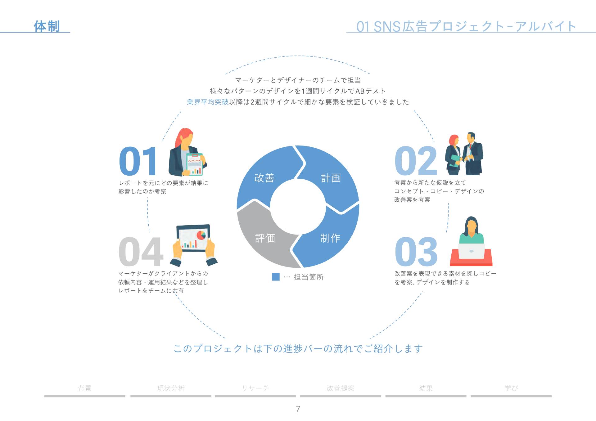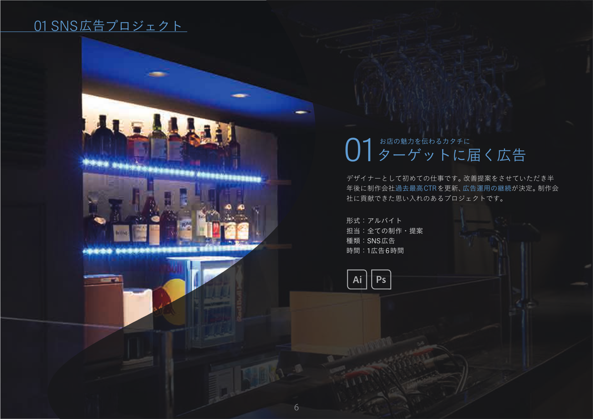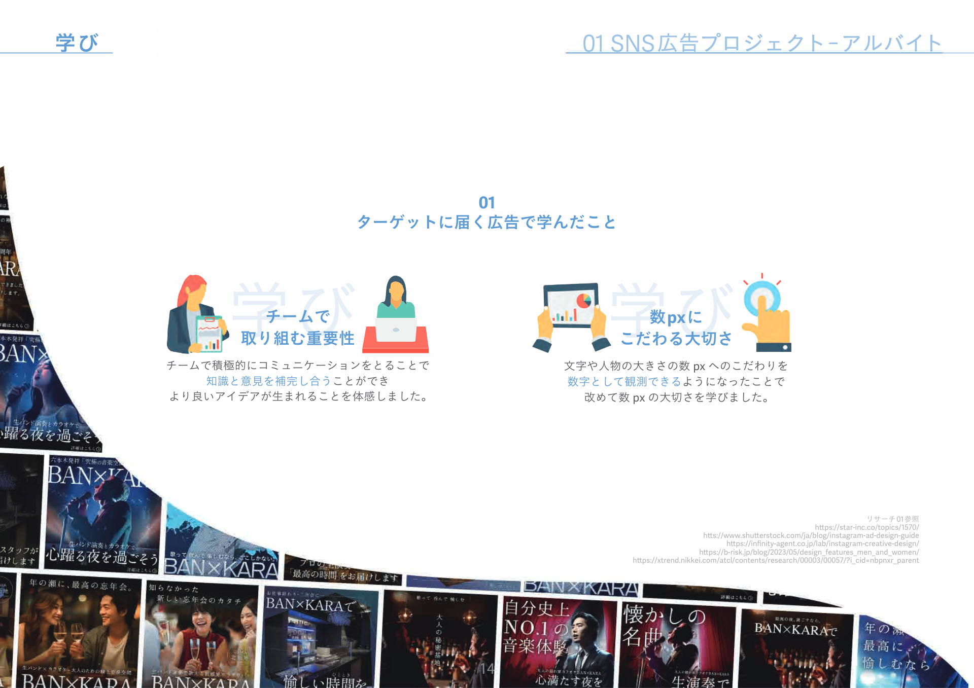 制作会社へ入社後すぐに担当させていただき、改善提案を行ったSNS広告です。マーケターとデザイナーのチームで担当しています。