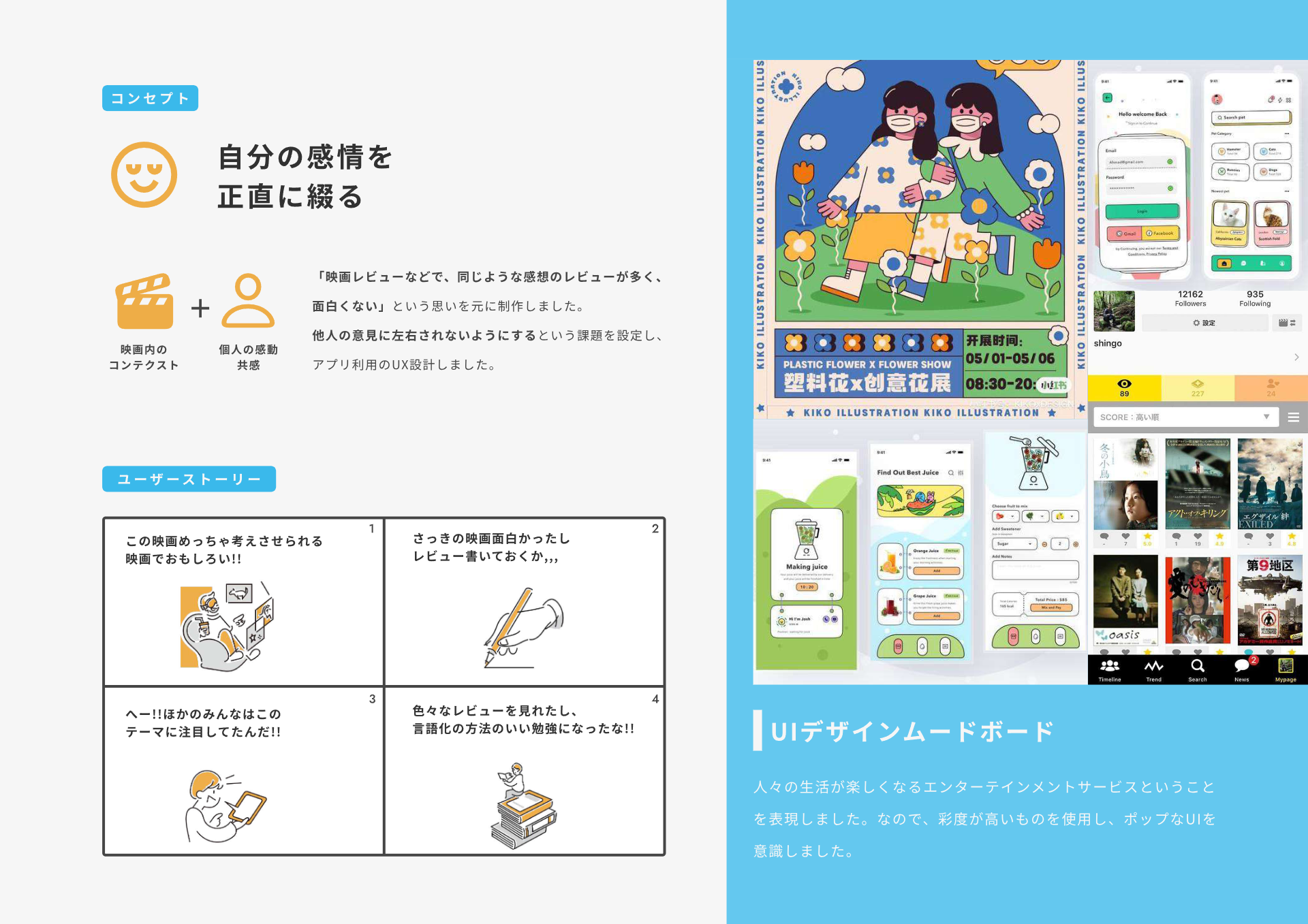 サービスデザインとUXUIデザインについて、2022年10月に出会い、そこから約一年間、一生懸命に産学連携プロジェクトや自主制作を通じて学び、その成果をまとめたものになります。