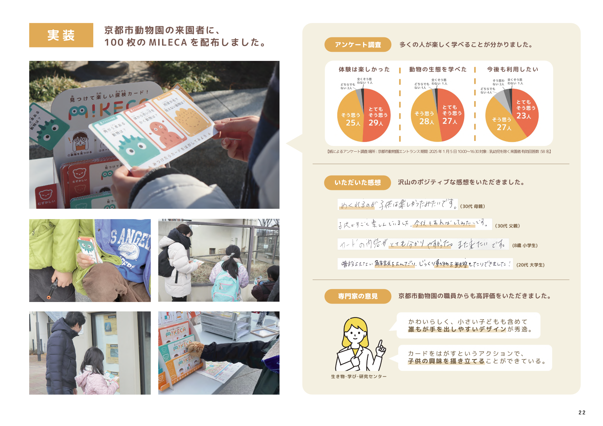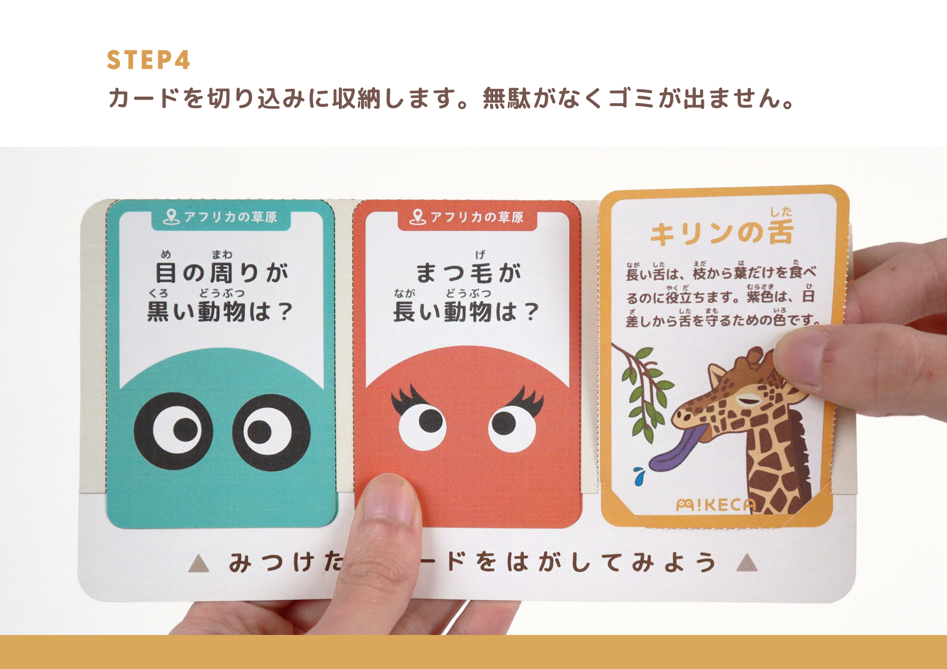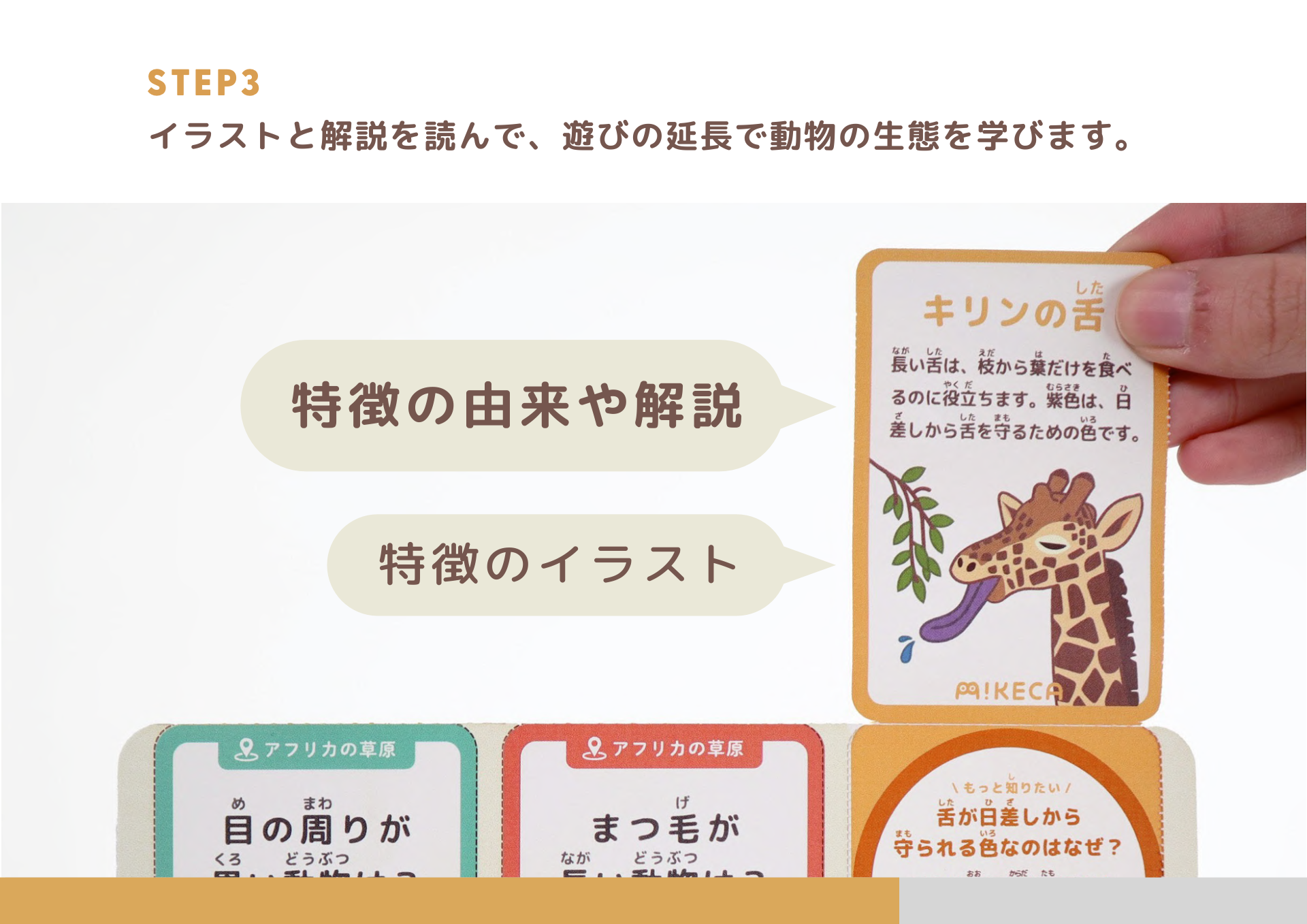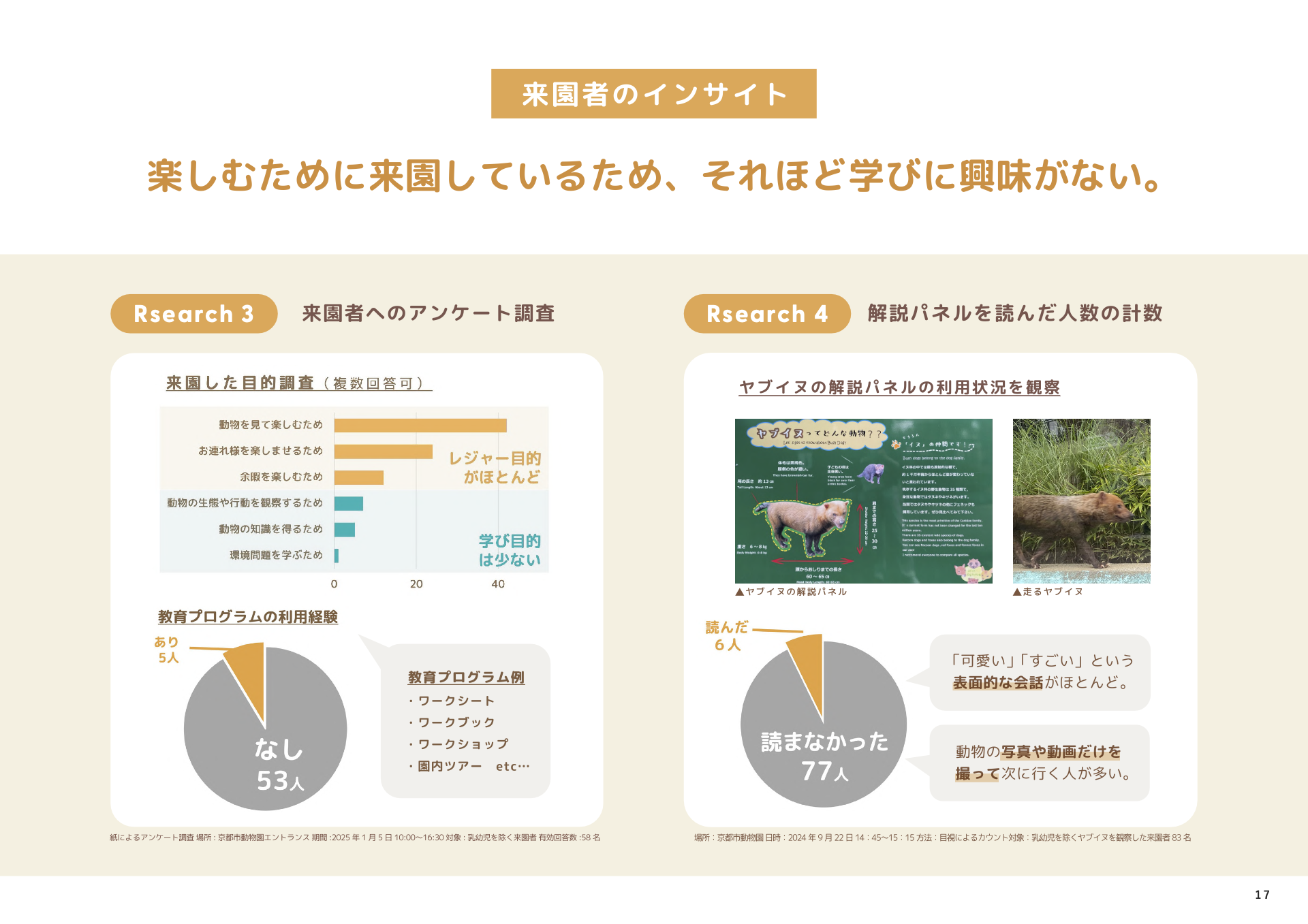 動物園は教育を通じて、子どもの環境意識向上を目指しているが、学ぶ意欲のある来園者は少ない。そこで、親子が楽しみながら生態を学べるツールを制作した。